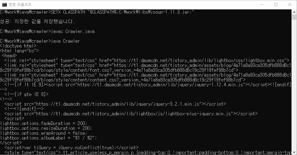 1) 실행하면 위와 같이 수집대상의 HTML이 출력됨.
