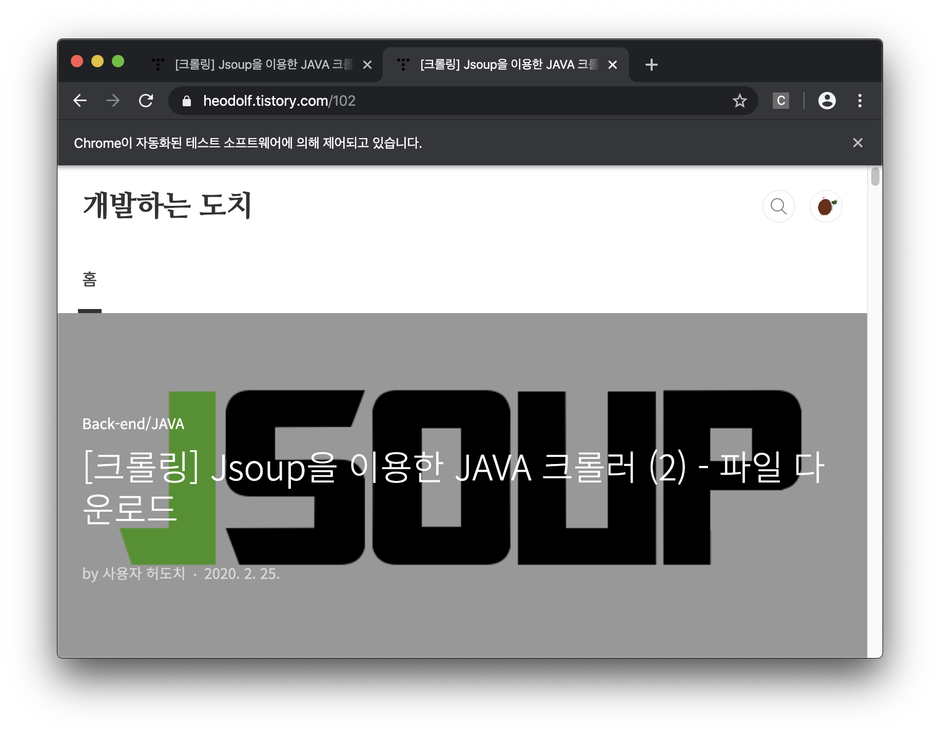 - 예제를 만들면서 다른 포스트들을 크롤링하였는데, Jsoup을 이용할 때는 조회수에 영향을 미치지 않았다. 그런데, Selenium을 이용하니까 조회수가 증가하였다. 이렇게 조회수를 조작하는 사람도 있지 않을까라는 생각이 들엇다.