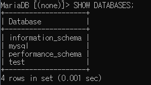 MariaDB는 Database이다. 사용하려면 당연히 'DATABASE'가 있어야 한다. 처음 설치하면 'test', 'mysql' 등 기본 DATABASE가 설치되어 있는데, 사용자가 새로운 DATABASE를 직접 추가하거나 삭제할 수 있다. 그래서, 이번 포스트에서는 DATABASE를 조회, 생성, 삭제하고 사용하는 방법에 대해서 알아보도록 하겠다.