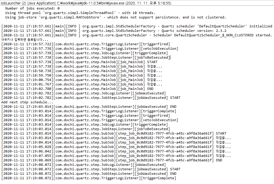 - MainJob이 완료된 후 SubJob이 수행되는 것을 확인할 수 있음.