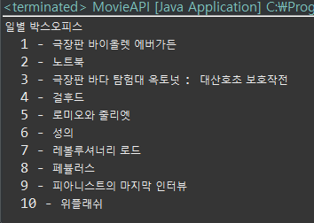 2020/11/16 - [Back-end/JAVA] - [JAVA] 영화 박스오피스 오픈 API (1) - 사전준비