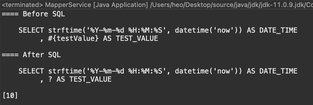 지금까지 XML파일에서 SQL을 읽어 PreparedStatement SQL로 변환시켜보았다. 생각보다 간단하게 구현할 수 있었다. 다음 포스트에서는 SQLite와 연결해서 실제로 사용해보도록 하겠다.