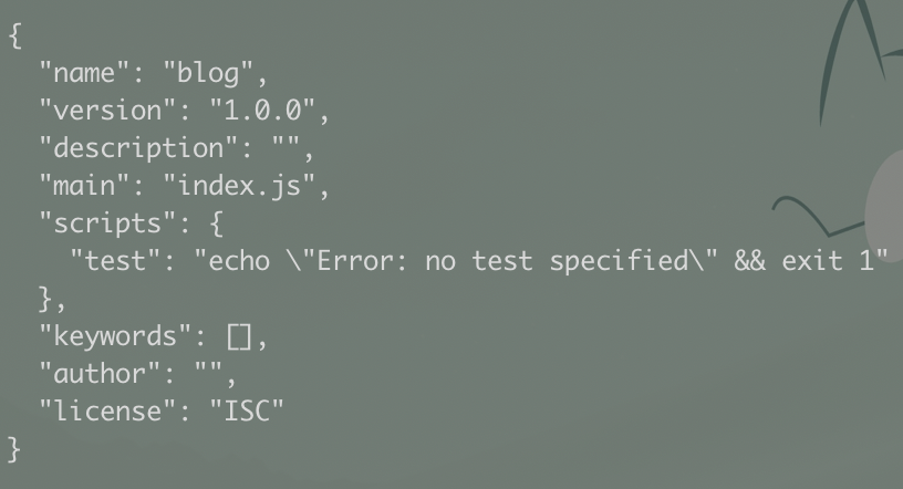 - 명령어를 실행하면 [ package.json ] 파일이 생성됨.