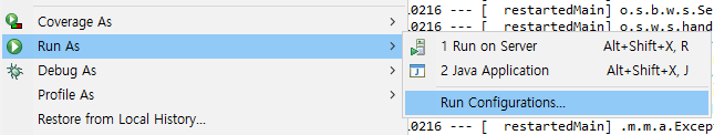 7-1. Application.java 오른쪽 클릭 후 [ Run As ] - [ Run Configurations... ] 선택