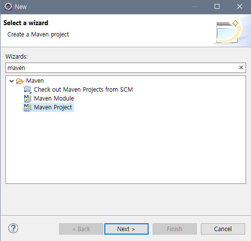 1-1. Maven Project 선택 후 [ Next ] 클릭.