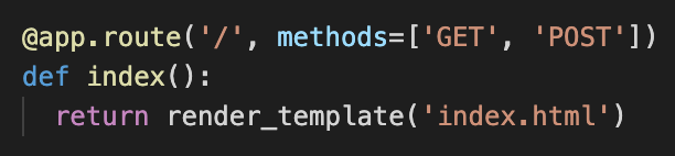 Flask에서 Route를 설정하기 위해서는 아래 사진과 같이 @app.route를 함수를 생성할 때 위에 선언해주는데 이것이 바로 데코레이터이다. 데코레이터는 앞에 '@' 키워드를 붙여서 사용한다.