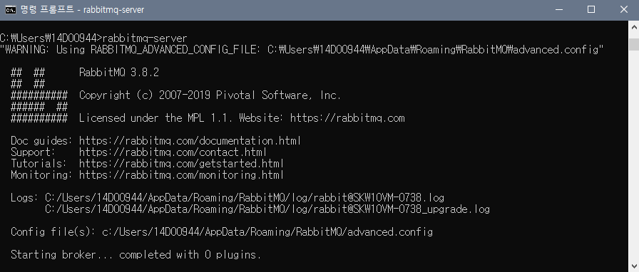 - rabbitmq-server : Fore-ground 실행 방식이며, 창을 종료하면 서비스도 같이 종료됨.