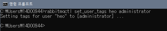 - rabbitmqctl set_user_tags <username> administrator 실행.