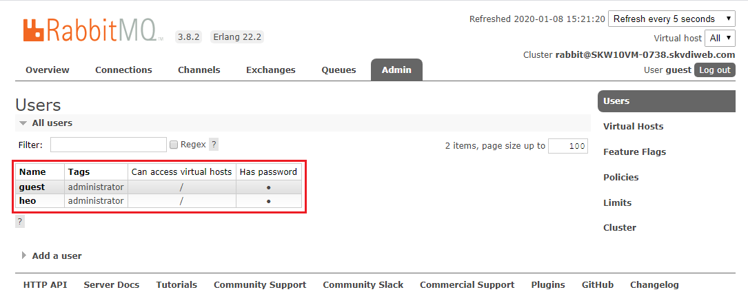 5-1. RabbitMQ Server 관리화면에서 [ Admin ] 탭에서 매우 쉽게 유저를 추가할 수 있으므로, 툴을 사용하여 어떻게 추가하는지 알아보자.