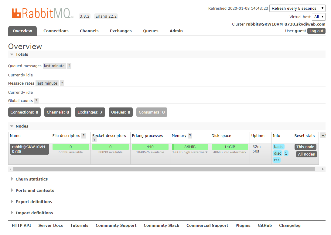 - 정상적으로 실행되면 아래와 같이 RabbitMQ Server의 정보를 확인할 수 있음.