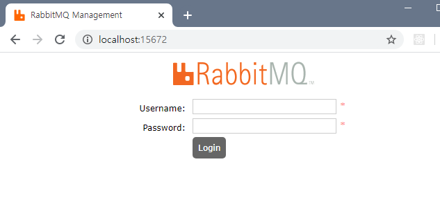 4-4. 인터넷 브라우저를 열고 [ localhost:15672 ]로 접속.