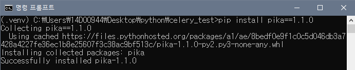 - pip install pika==1.1.0
