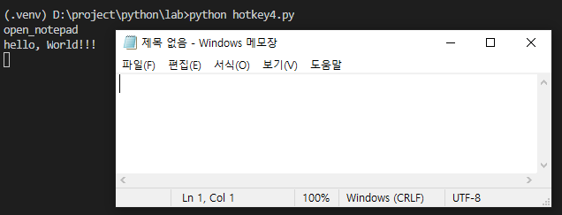 - 8 ln: 키보드 왼쪽의 [ ALT ]와 [ 숫자 2 ]을 누르면, open_notepad함수를 실행.