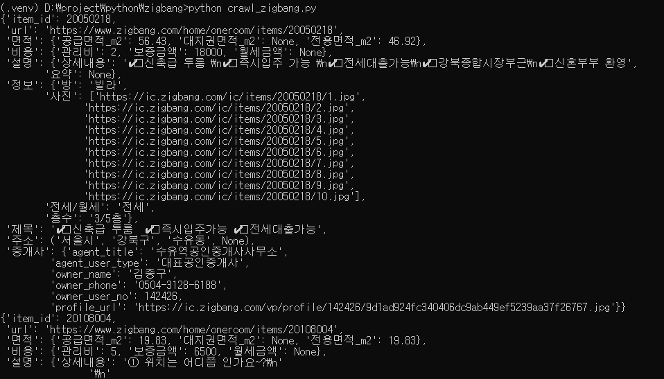 - 15 ln: 공인중개사 정보를 제외하고 item_id만 추출.