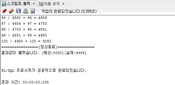 V_RESULT := '결과값이 틀렸습니다. [예상:5050][실제:'||V_TOTAL||']';