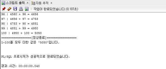 [PL/SQL] 예제 (1) - 1~100의 수를 더하는 과정을 출력