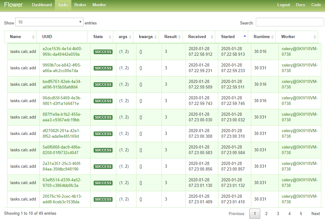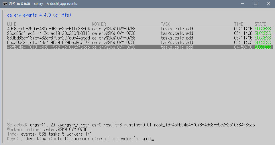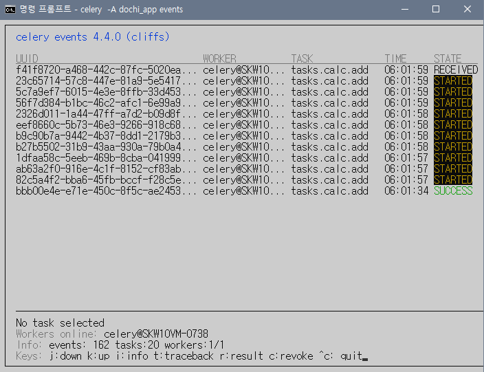 - UUID, WORKER, TASK, TIME, STATE를 확인할 수 있음.