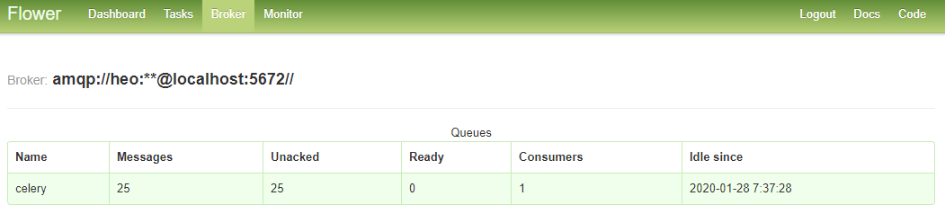- [ Unacked ]: Celery가 Message를 받았는지에 대한 응답 건수.