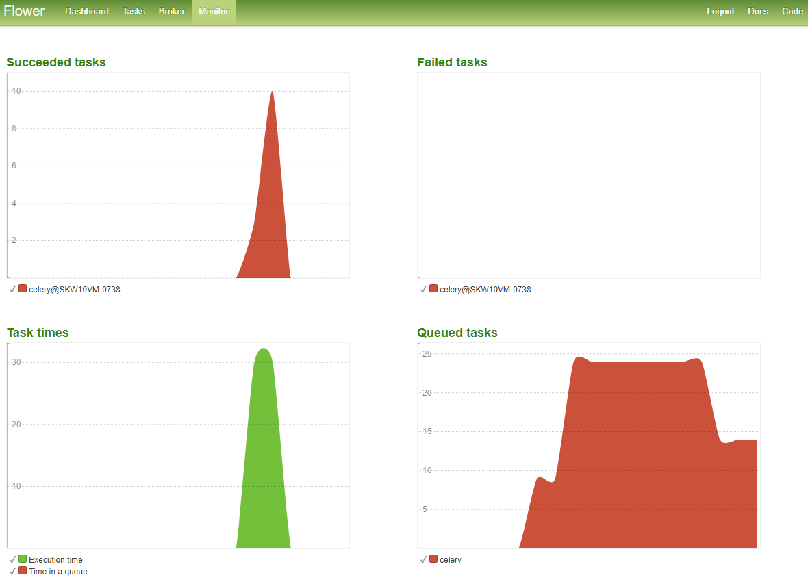 - Task의 수행 상태, 시간, Queue에 적재된 Tasks의 수를 그래프로 확인 할 수 있음.