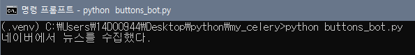- 명령 프롬프트에는 '네이버에서 뉴스를 수집했다.'라는 Log를 출력.