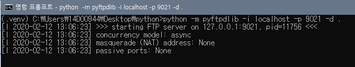 # 실행 옵션은 [ python -m pyftpdlib --help ]를 통해 확인할 수 있음.