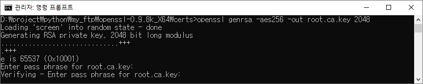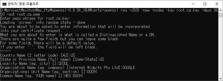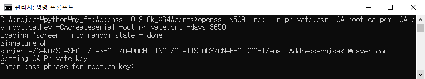 Enter pass phrase for root.ca.key: [패스워드 입력]