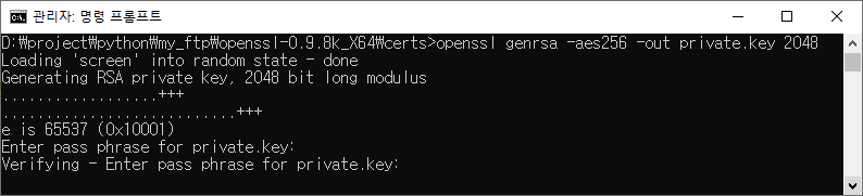 Verifying - Enter pass phrase for private.key: [패스워드 한번 더 입력]