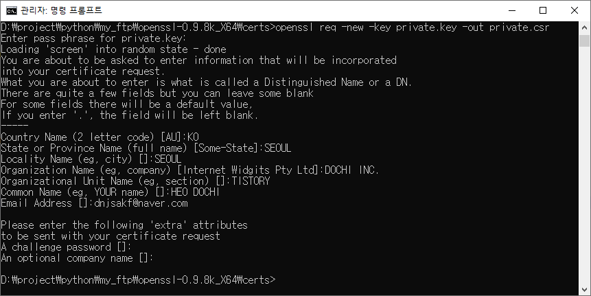 Common Name (eg, YOUR name) []:HEO DOCHI
