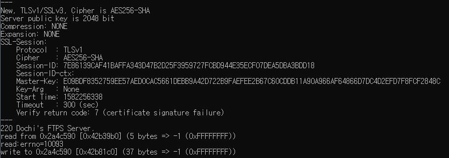 * 이 명령어가 기본적으로 HTTPS 인증서를 확인하는 명령어 인데, FTP에 쓰다보니 HandShake에서 계속 오류가 발생하였다.