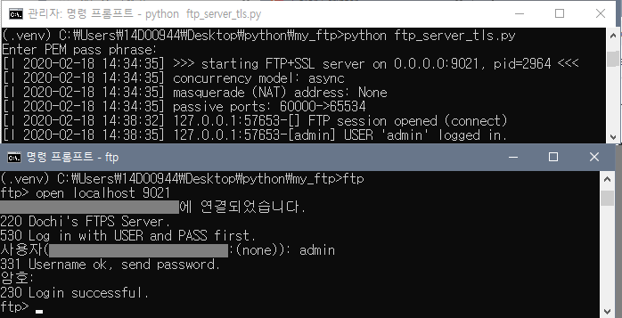 2-3. FTPS서버 실행 결과